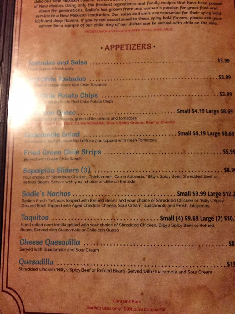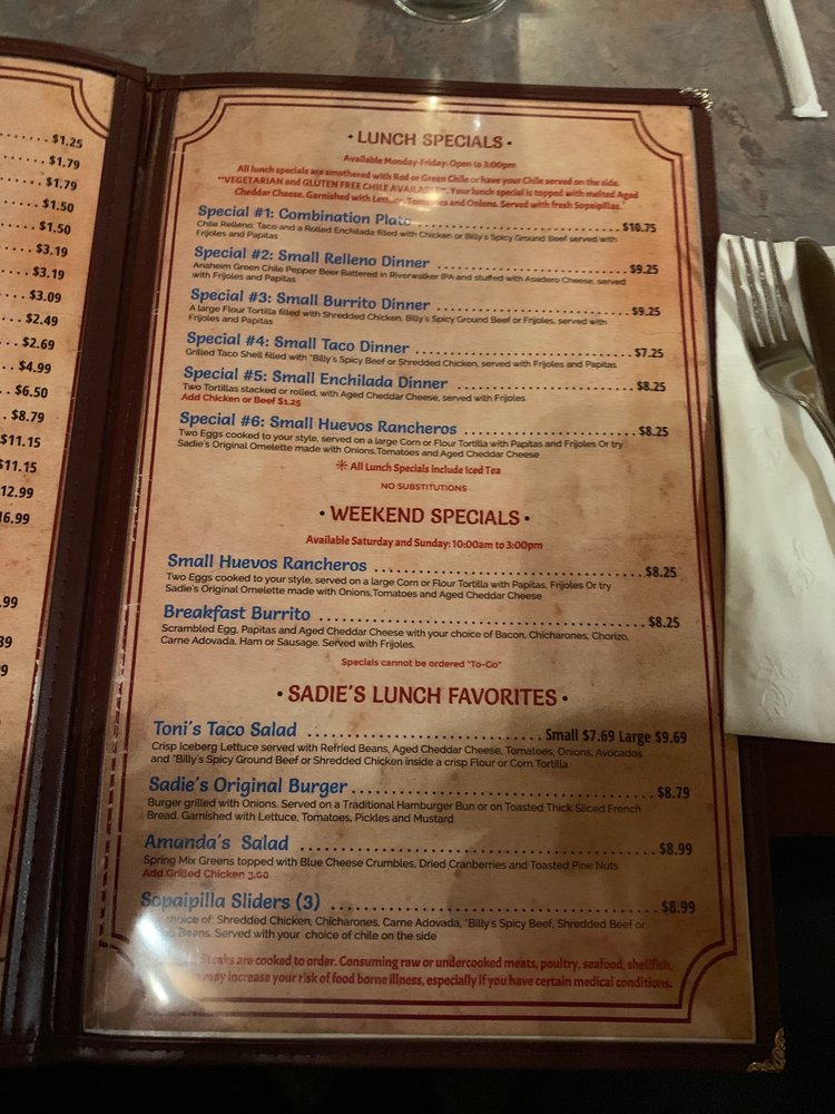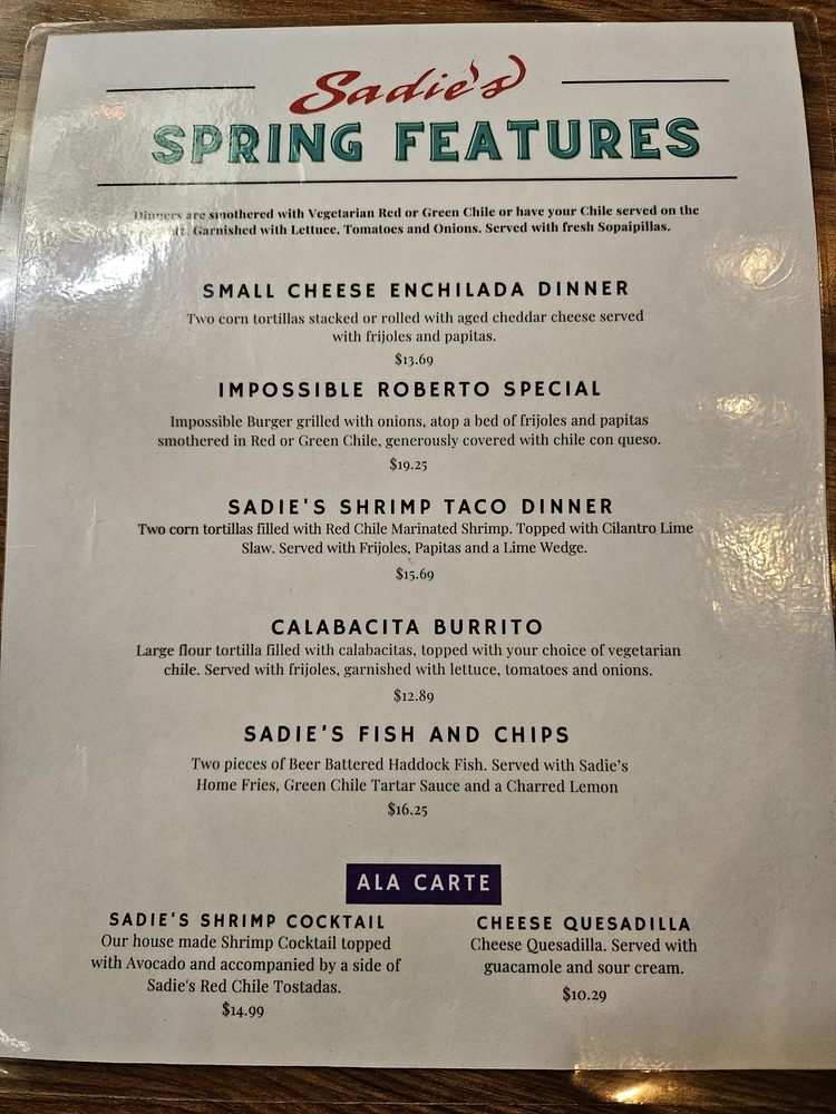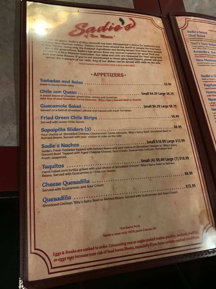 Introducing Sadie's of New Mexico, a popular spot in Albuquerque offering New Mexican cuisine. This casual restaurant takes reservations, offers delivery and takeout, and provides vegan and limited vegetarian options. With a full bar, outdoor seating, and happy hour specials, Sadie's is known for their flavorful dishes like Carne Adovada, Chile Rellenos, and their famous salsa. Customers rave about the warm chips and spicy salsa as a complimentary starter. The Roberto's Special, chicken enchiladas, and Adovada dishes are highly recommended. The service is friendly and attentive, with some guests noting the welcoming atmosphere provided by the staff. Despite a few minor issues with the hostesses, the overall dining experience at Sadie's is highly praised for its delicious food and generous portion sizes. Whether you're a local or just passing through, Sadie's Of New Mexico is a must-try for authentic New Mexican flavors.